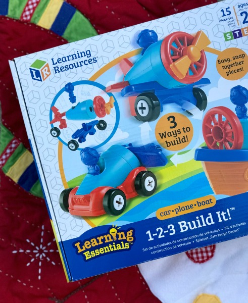 Learning Resources 1-2-3 Build It! – Your budding engineer will love using these mix-and-match pieces to build three different modes of transportation—an airplane, a tugboat, or a car (one at a time). Use the play screwdriver to put the large, durable pieces where they go.