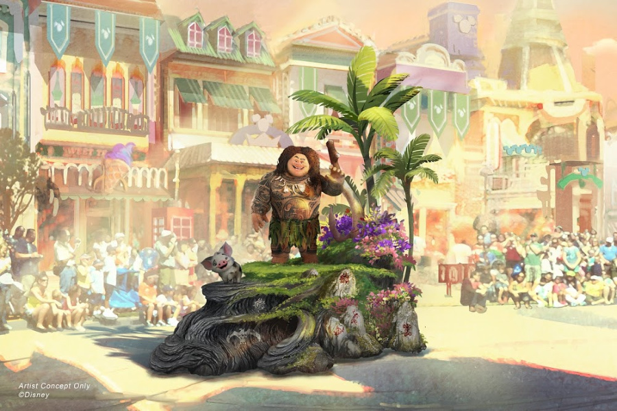 a Disney park. - Joining Moana on her journey is Maui, who travels along on his own magical piece of the